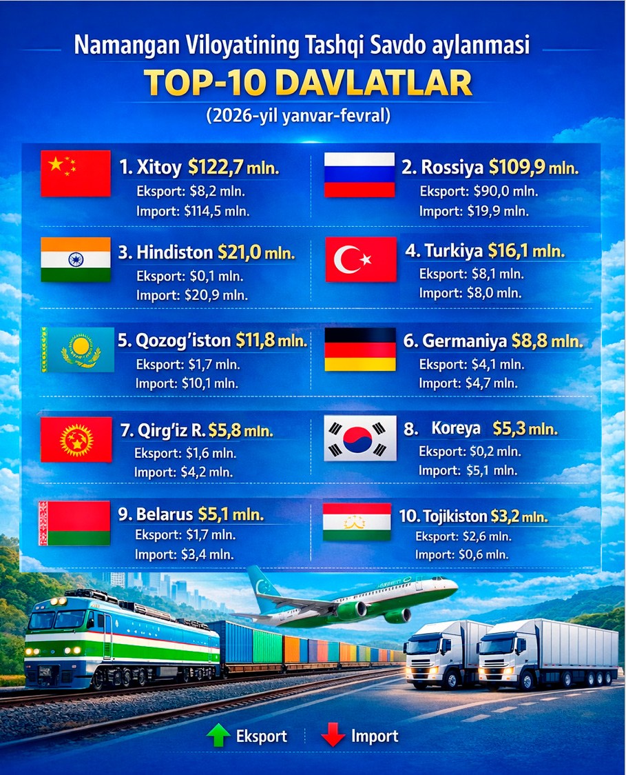 Namangan viloyatining iqtisodiy holati raqamlarda: