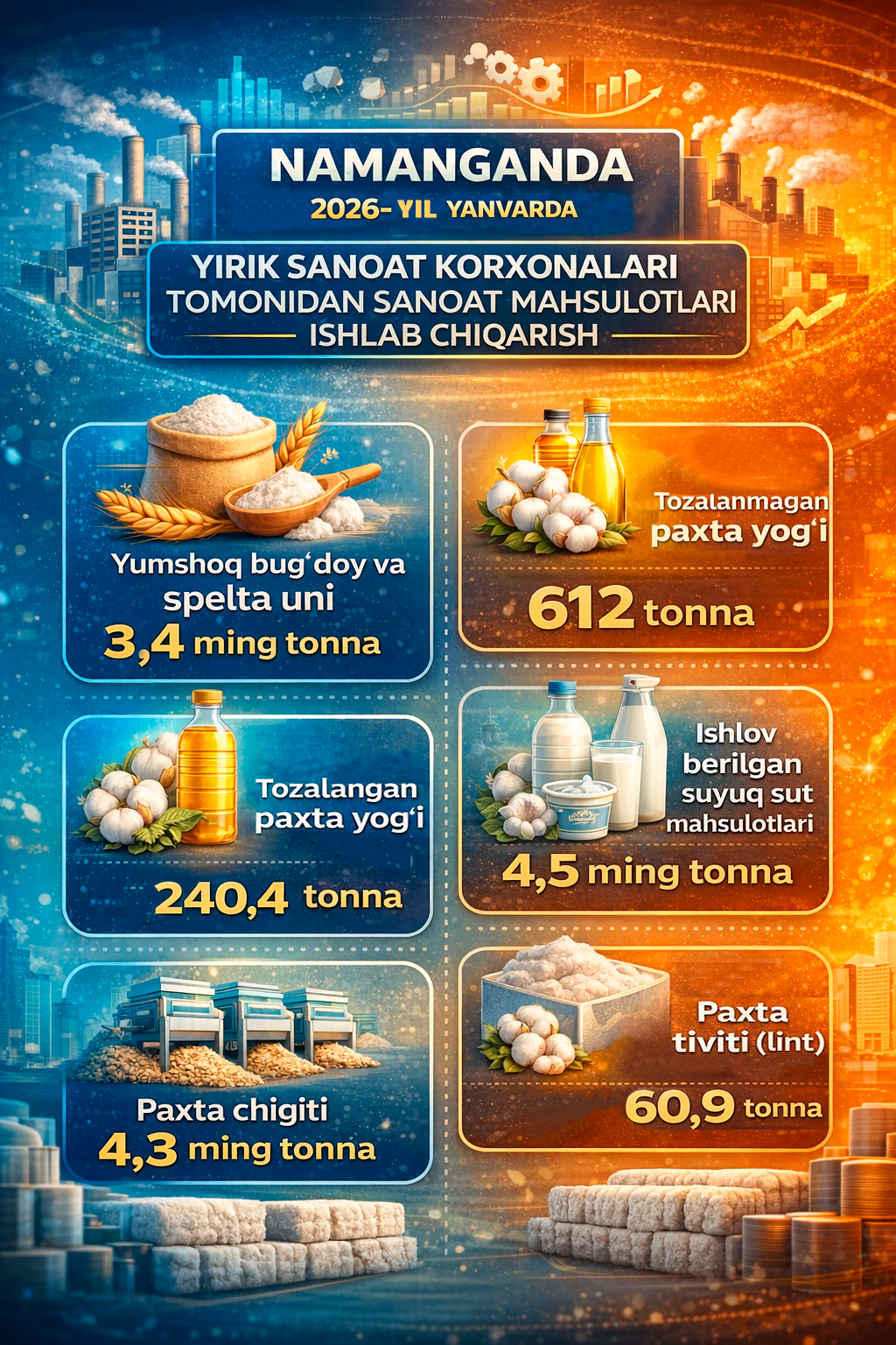 #Infografika Namangan viloyatining sanoat ishlab chiqarishi