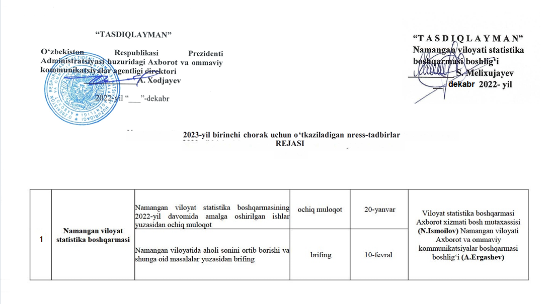 2024-yil uchun rejalashtirilayotgan tadbirlar