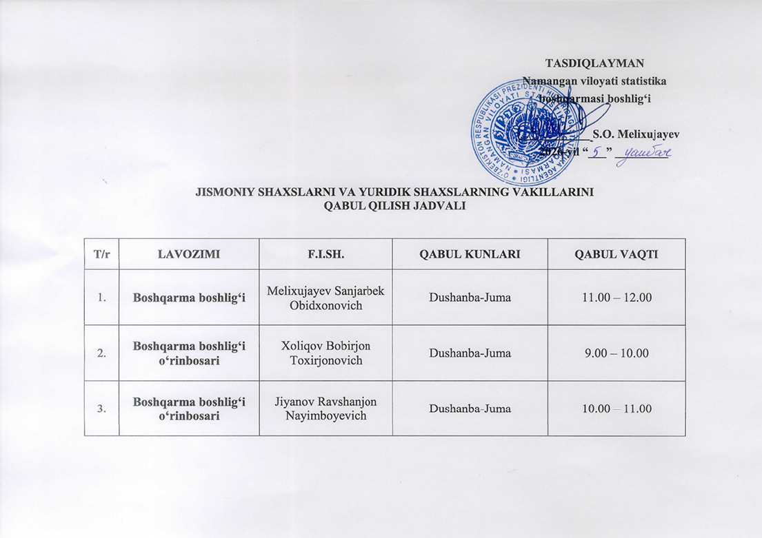 Qabul qilish jadvali