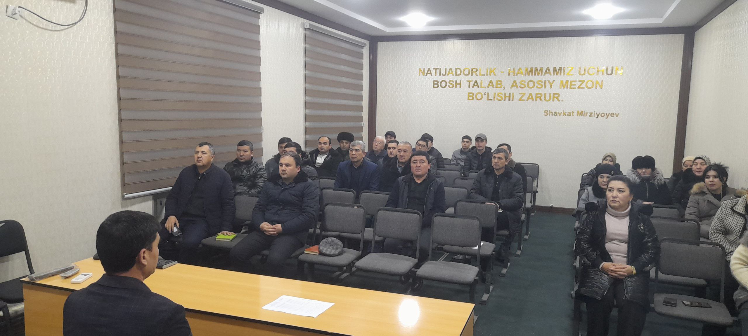 Joriy yilning 20- dekabr kuni Namangan viloyati statistika boshqarmasi xodimlari ishtirokida "Huquqiy bilimlarni mustahkamlash" mavzusida o‘quv seminari tashkil etildi.