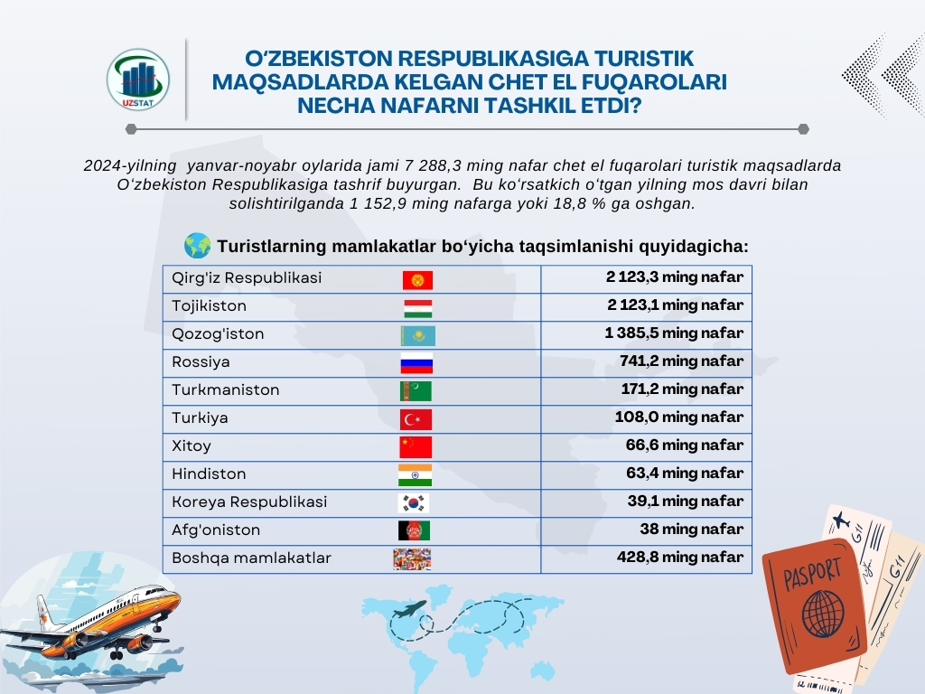 2024- yilning yanvar-noyabr oylarida Namangan viloyati bo‘yicha ko‘rsatilgan bozor xizmatlari hajmi 38 trln 11,4 mlrd so‘mga yetib, o'sish sur'ati 2023- yilning mos davriga nisbatan 112,1 % ni tashkil etidi.