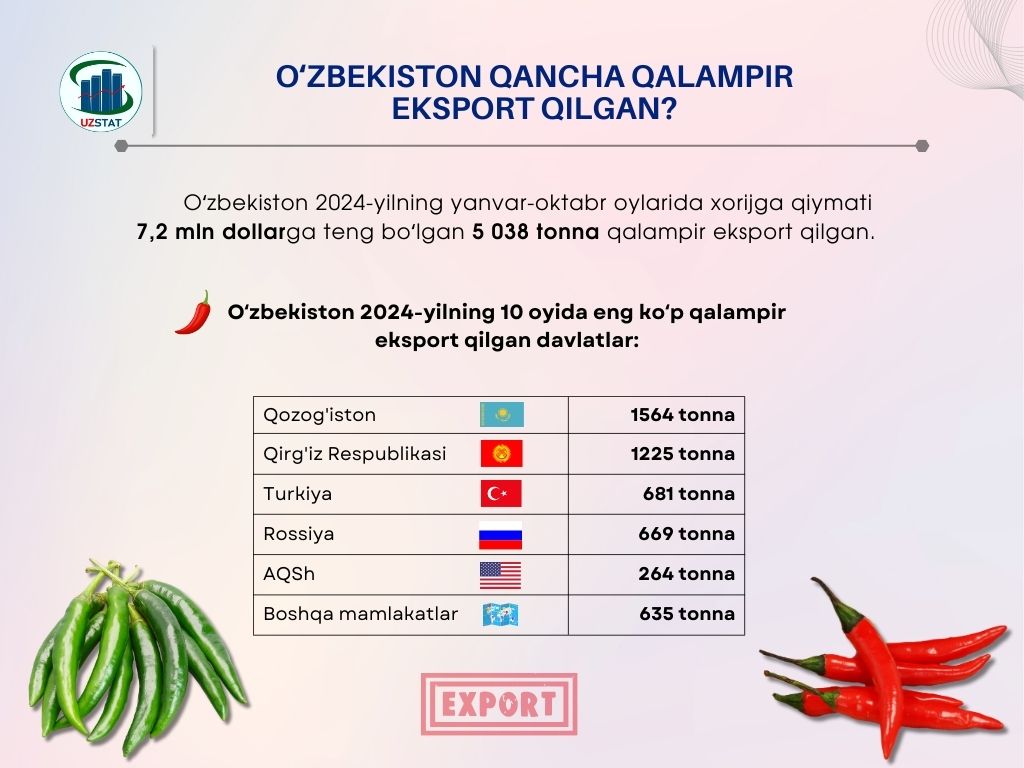 2024- yilning yanvar-noyabr oylarida Namangan viloyati xorijiy davlatlarga qiymati 51,1 mln AQSH dollarilik mashinalar va transport asbob-uskunalari eksportini amalga oshirgan.
