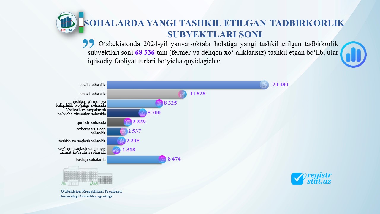 2024- yilning 1- noyabr holatiga viloyatimizda faoliyat ko‘rsatayotgan sanoat korxonalari soni 4 591 ta bo‘lib, jami faoliyat ko‘rsatayotgan korxonalarning 17,2 foiz ulushini tashkil etdi.