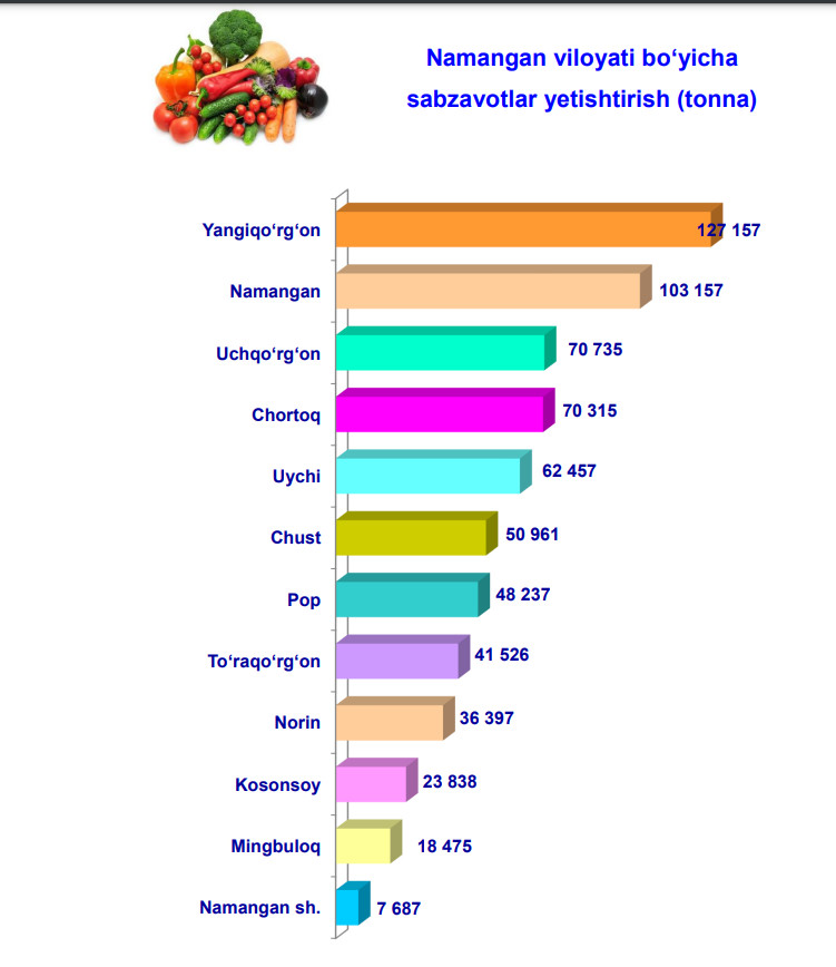 2024- yilning yanvar-oktabr oylarida viloyatimizning barcha hududlarida joylashgan dehqon bozorlarida qishloq xo‘jaligi mahsulotlarini savdo aylanmasi hajmi 1,7 trln so‘mni tashkil qildi.