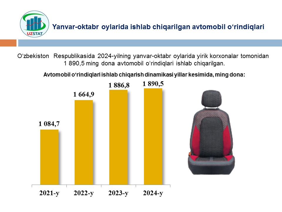 2024- yilning yanvar-oktabr oylarida Namangan viloyati bo‘yicha avtotransport vositalari va ularning yehtiyot qismlari ulgurji va chakana savdo aylanmasi hajmi 3,5 trln so‘mni tashkil etib, 2023- yilning mos davriga nisbatan 17,7 % ga ko‘paygan.