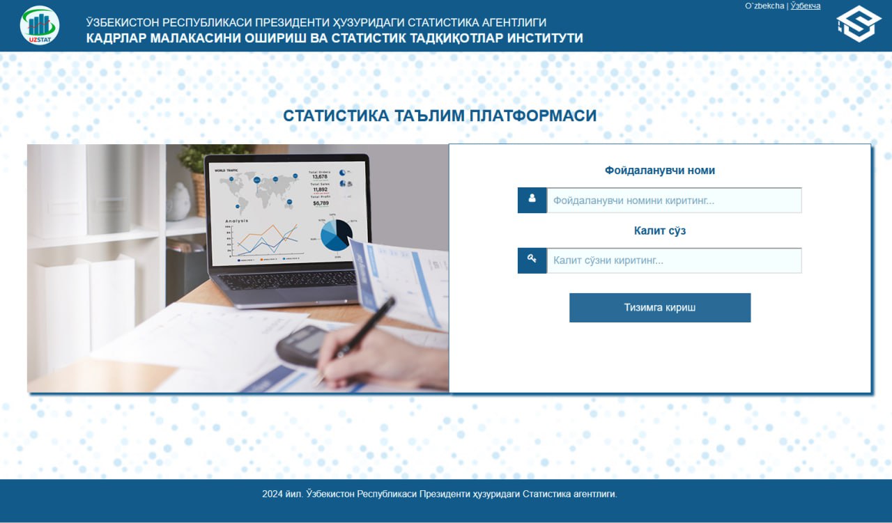Oʻzbekiston Respublikasi Prezidenti huzuridagi Statistika agentligining Kadrlar malakasini oshirish va statistik tadqiqotlar instituti faoliyatini yanada takomillashtirish, shuningdek, Statistika agentligi tizimida xodimlar tomonidan mustaqil taʼlim olish orqali oʻz kasbiy kompetensiyasi va savodxonligini uzluksiz oshirib borishini tizimli yoʻlga qoʻyish maqsadida “Statistika taʼlim platformasi” (talim.stat.uz) korporativ axborot tizimi ishga tushirildi.