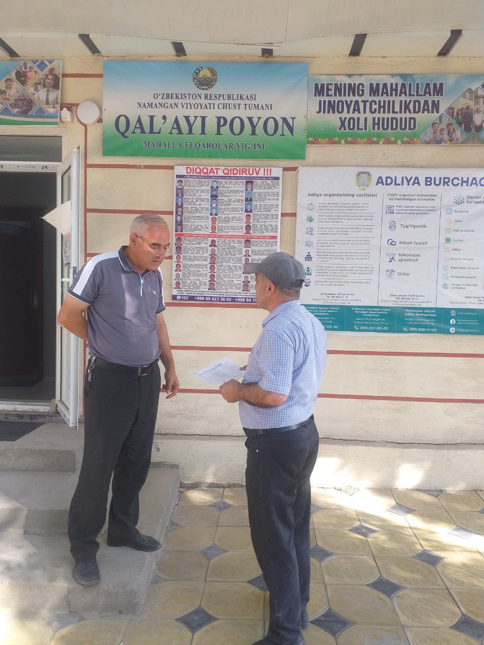 Aholini ro‘yxatga olish jarayoniga tayyorgarlik ko‘rish maqsadida hududlarda statistika organlari tomonidan mahalla faollari bilan birgalikda reja-jadval asosida mahallalardagi raqamlanmagan xonadonlarga raqam o‘rnatilganligi va nom belgilari o‘rnatilmagan ko‘chalar holatini o‘rganish ishlari davom etmoqda.