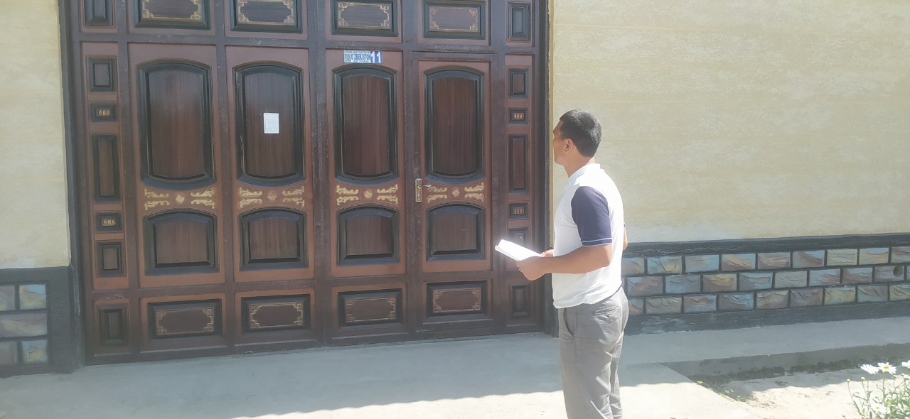 Aholini ro‘yxatga olish jarayoniga tayyorgarlik ko‘rish maqsadida hududlarda statistika organlari tomonidan mahalla faollari bilan birgalikda reja-jadval asosida mahallalardagi raqamlanmagan xonadonlarga raqam o‘rnatilganligi va nom belgilari o‘rnatilmagan ko‘chalar holatini o‘rganish ishlari davom etmoqda.