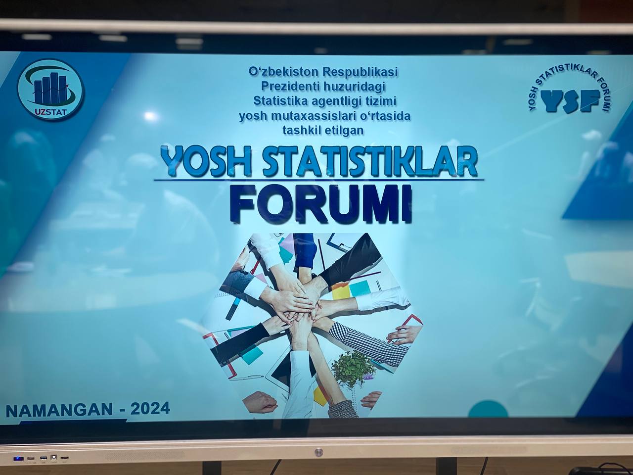 O‘zbekiston Respublikasi Prezidenti huzuridagi Statistika agentligi tizimida yoshlarga oid davlat siyosatini amalga oshirish hamda yosh xodimlarni qo‘llab-quvvatlash maqsadida joriy yilning 24-25-may kunlari Namangan viloyatida Statistika agentligining hududiy boshqarmalari yosh xodimlari ishtirokida “Yosh statistiklar 1-forumi” tashkil etildi.