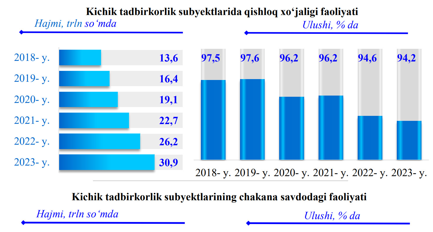 Respublikamizda 2024-yilning yanvar oyida 5 945 ta yangi kichik tadbirkorlik subyektlari (fermer va dehqon xoʻjaliklarisiz) tashkil etilgan.