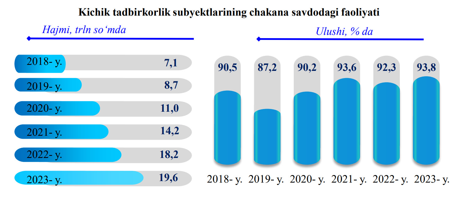 Oʻzbekiston Respublikasida 2023-yil yanvar-dekabr oylarida kichik tadbirkorlik subyektlarining sogʻliqni saqlash sohasidagi xizmatlari hajmi 4,6 trln. soʻmni tashkil qildi.