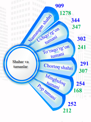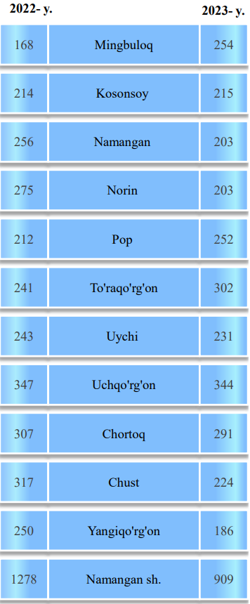 2022/2023 o‘quv yili boshiga Namangan viloyatida jami umumta’lim muassasalari soni 742 tani tashkil etib,