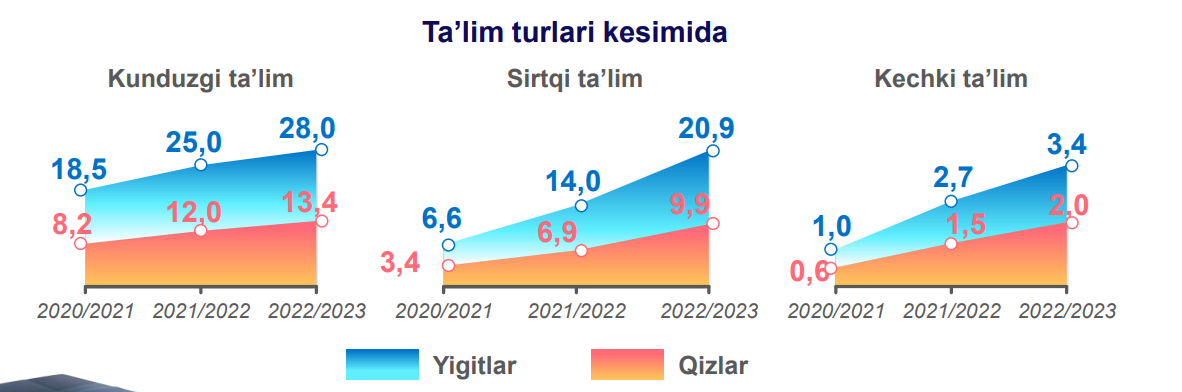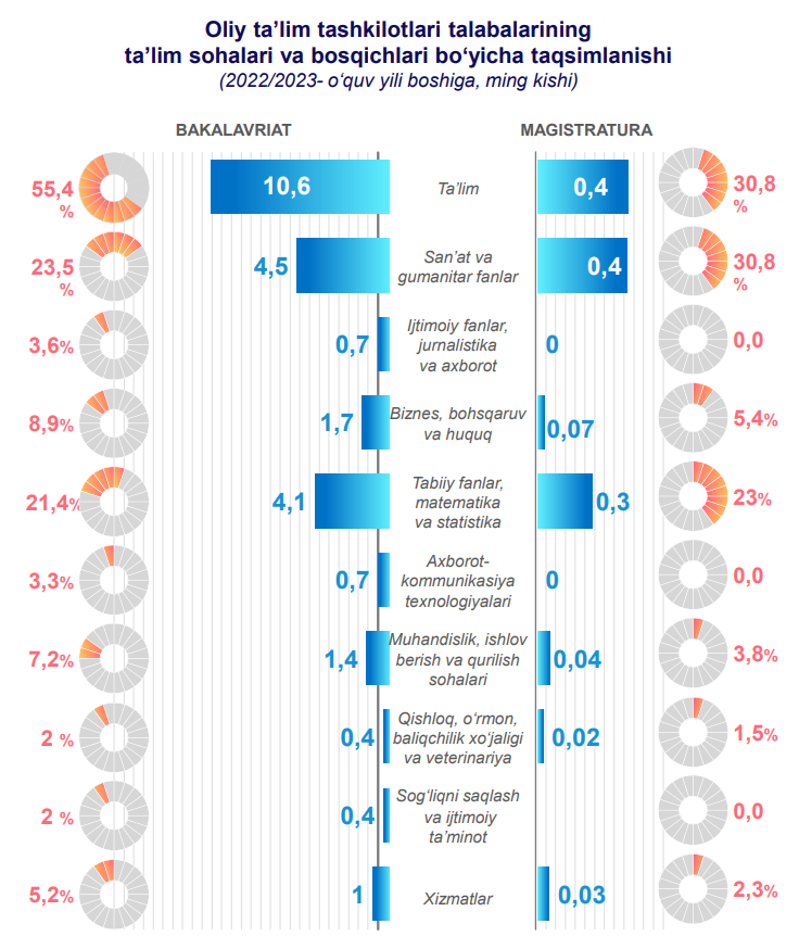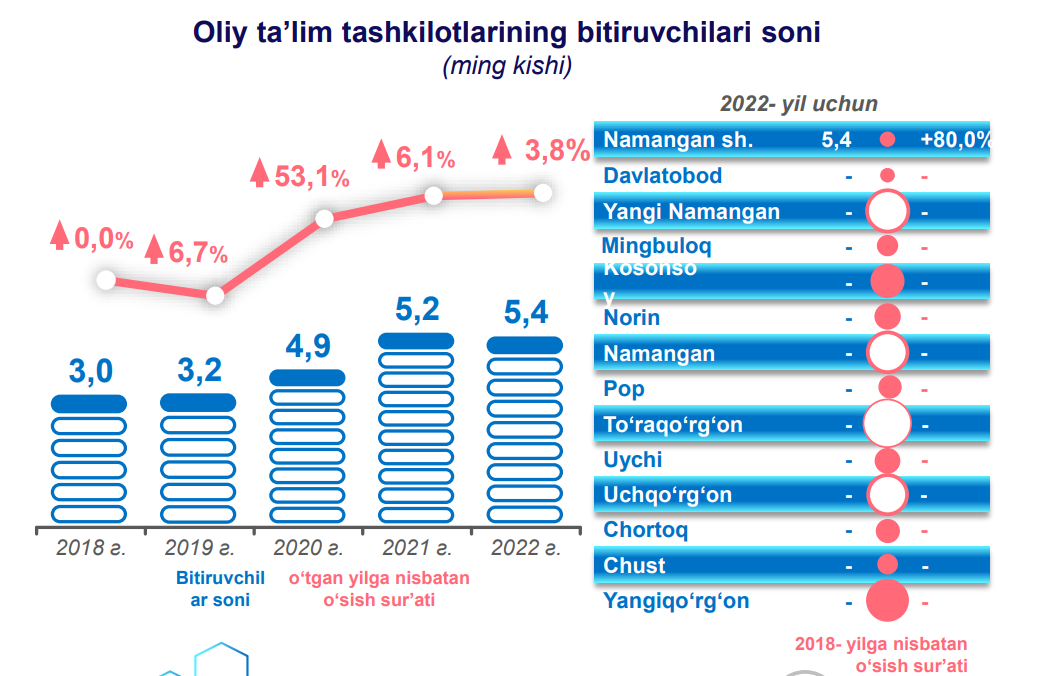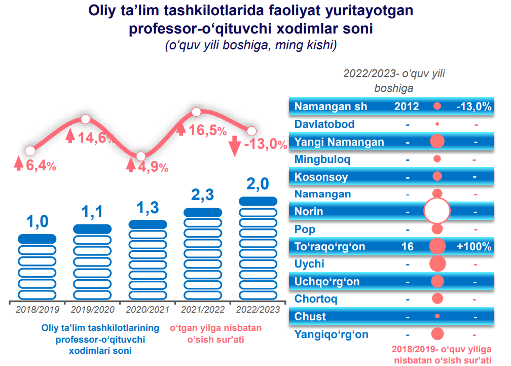 2022/2023 o‘quv yili boshiga Namangan viloyatida faoliyat yuritayotgan oliy ta’lim tashkilotlari soni 6 tani tashkil etib,