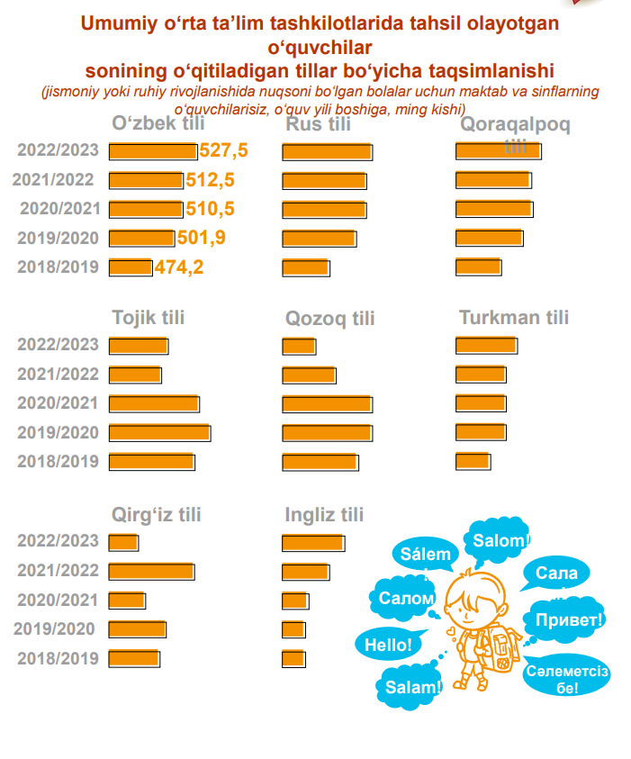 2023-yilning 1-iyun holatiga jami faoliyat ko‘rsatayotgan korxona va tashkilotlar soni 480 415 ta (fermer va dehqon xo‘jaliklarisiz) bo‘lib, shundan xususiy korxonalar soni 68 428 tani tashkil qildi. Faoliyat ko‘rsatayotgan xususiy korxonalar sonining eng ko‘pi quyidagi hududlarda qayd etildi:
