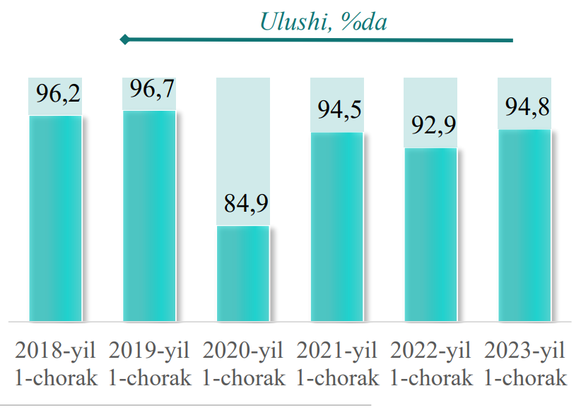 2023- yilning yanvar-aprel oylarida davomida ishlab chiqaradigan sanoatda 362,4 ming tonna portlandsement ishlab chiqarilgan. 2021- yilning mos davriga nisbatan 280,5 ming tonnaga ko‘paygan.