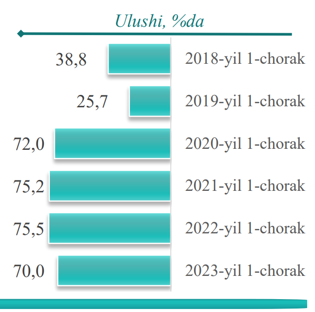 So‘nggi 6 yillikda chakan savdo tovar aylanmasining ijobiy o‘sish sur’ati kuzatildi.