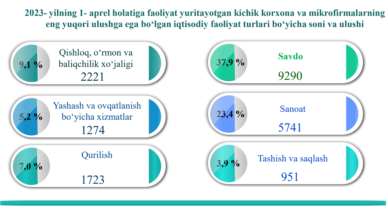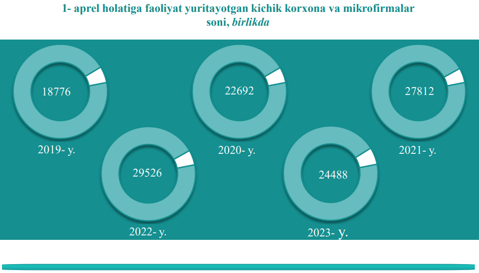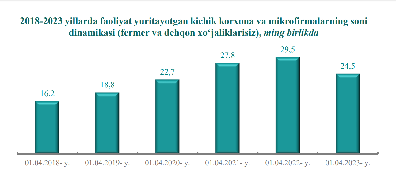 2023- yilning 1- aprel holatiga faoliyat yuritayotgan kichik korxona va mikrofirmalar soni 24,5 mingtani tashkil etib,