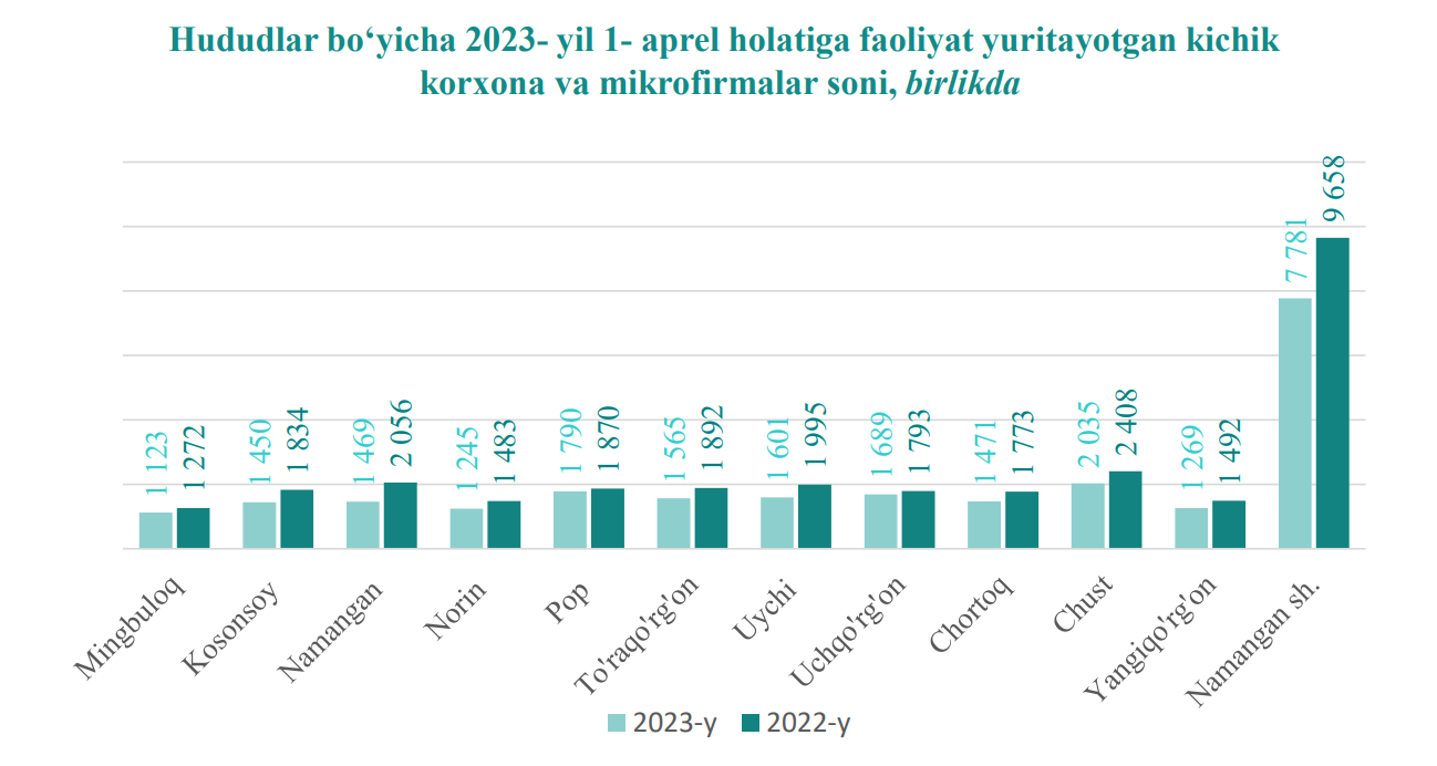 2023- yilning yanvar - martida 1,3 mingta yangi kichik korxona va mikrofirmalar (fermer va dehqon xo‘jaliklarisiz) tashkil qilindi,