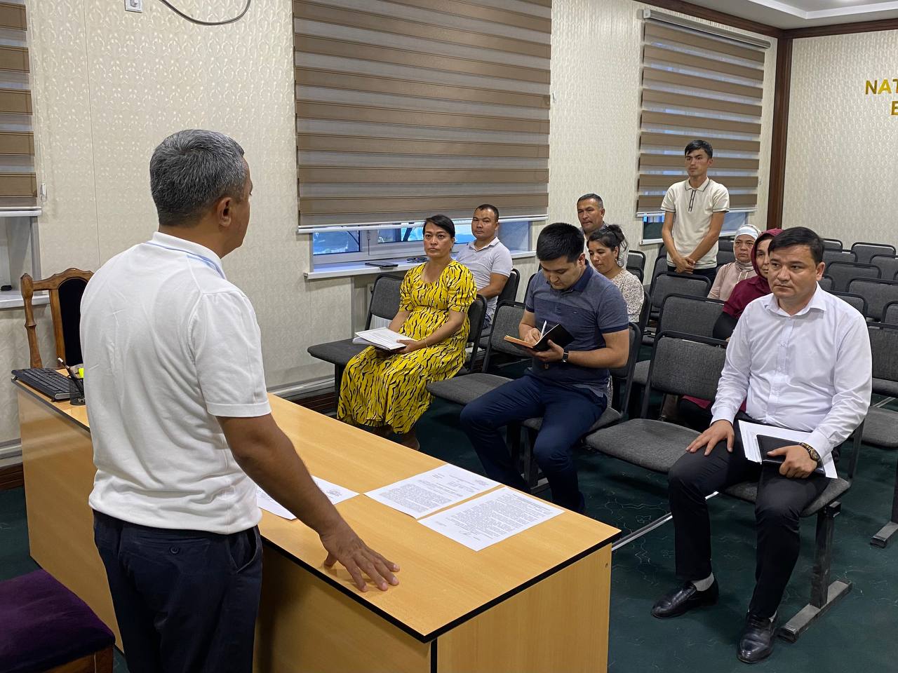 Joriy yilning 10- may kuni Namangan viloyat statistika boshqarma boshlig‘i S. Melixujayev tomonidan boshqarama boshlig'ining o‘rinbosar R. Jiyanov hamda "Turmush darajasi statistikasi va uy xo'jaliklari ko‘zatuvlari" bo'lim xodimlariga seminar-trening tashkil etildi.