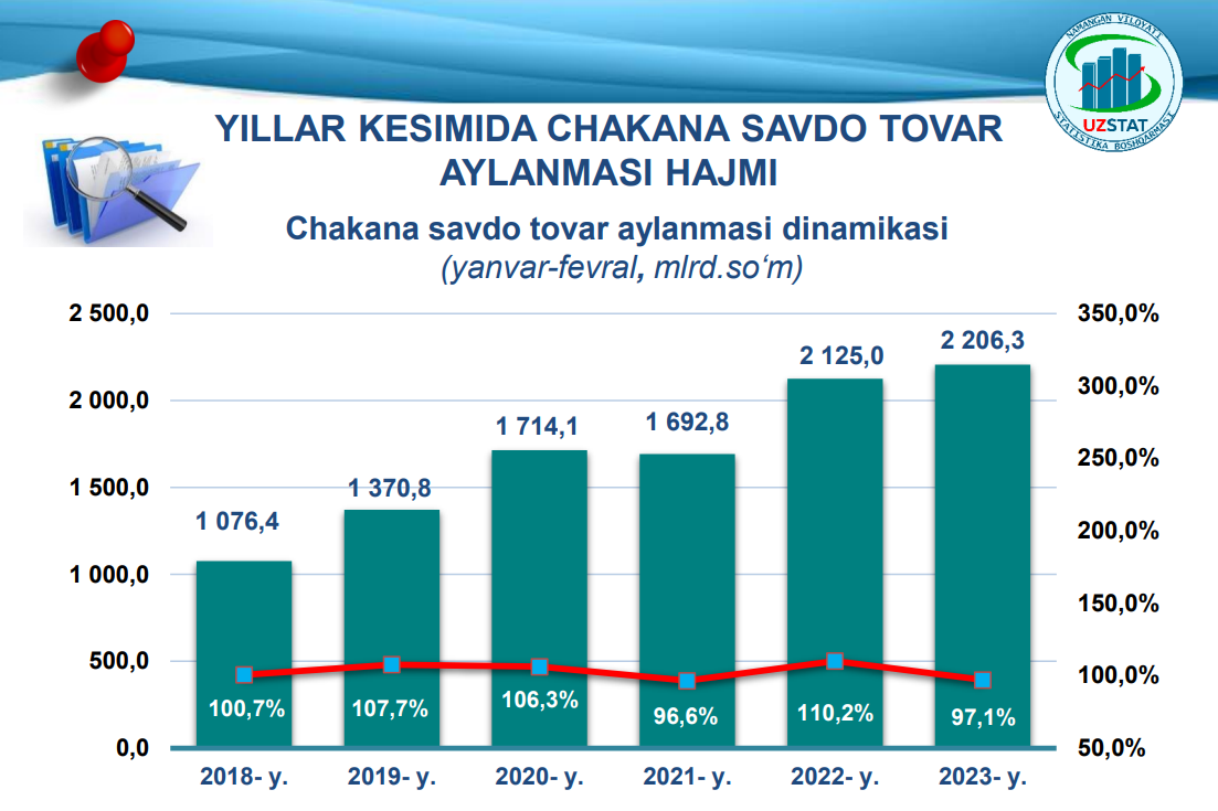 2023- yil yanvar-fevral oylarida Namangan viloyatida 577,4 mlrd.so‘mlik moliyaviy xizmatlar ko‘rsatilgan bo'lib,
