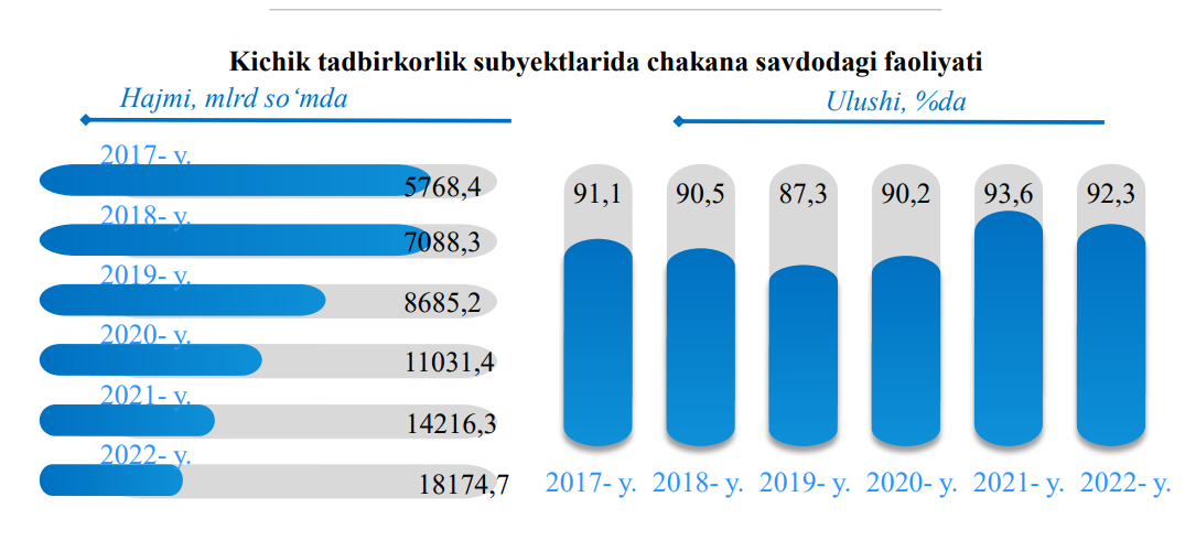 Namangan viloyati bo‘yicha 2023- yilning yanvar-fevral oylarida chakana savdo tovar aylanmasi hajmi 2 206,3 mlrd. so‘mni tashkil etib,
