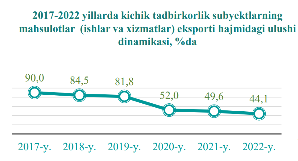 2022- yilning yanvar-dekabrida qishloq, o‘rmon va baliq xo‘jaligida kichik tadbirkorlik umumiy hajmiga nisbatan ulushi 95,3 % ni tashkil etdi.