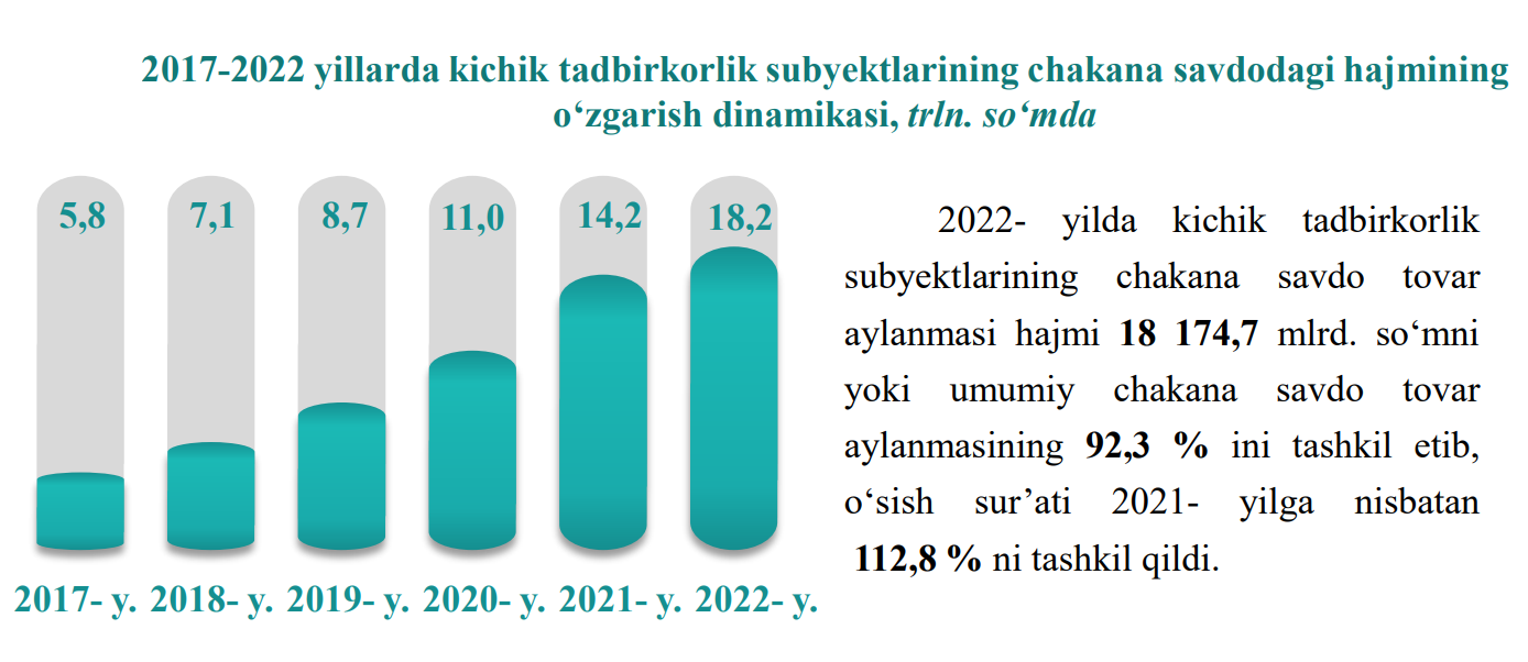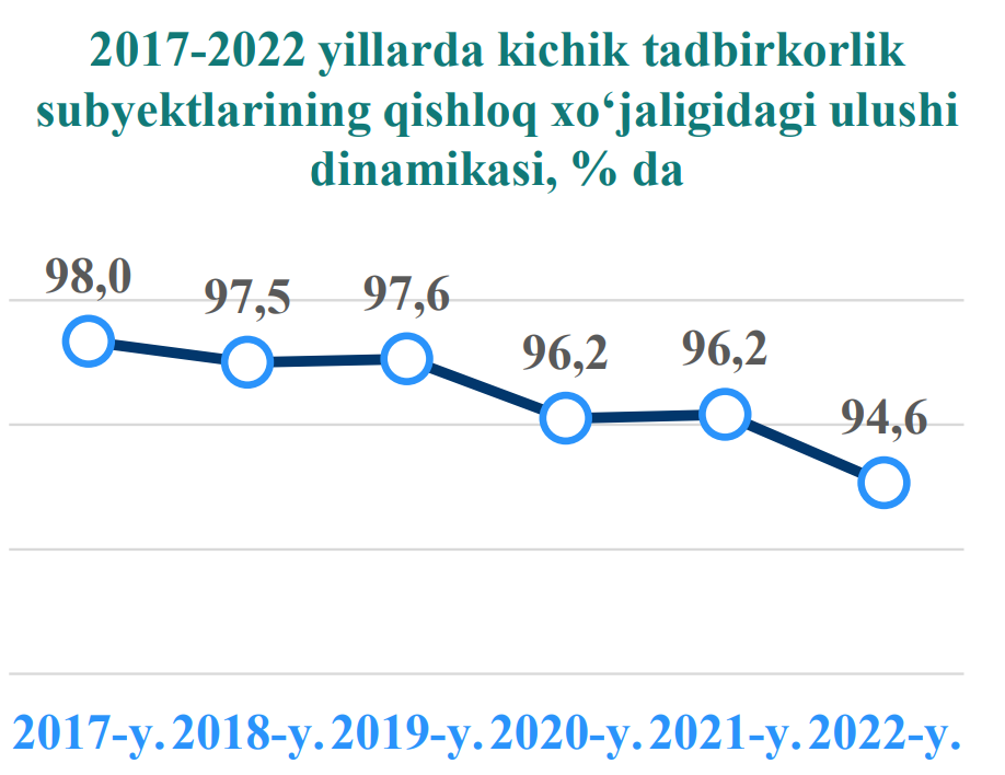 2017-2022 yillarda faoliyat yuritayotgan kichik korxona va mikrofirmalarning soni dinamikasi (fermer va dehqon xo‘jaliklarisiz), ming birlikda