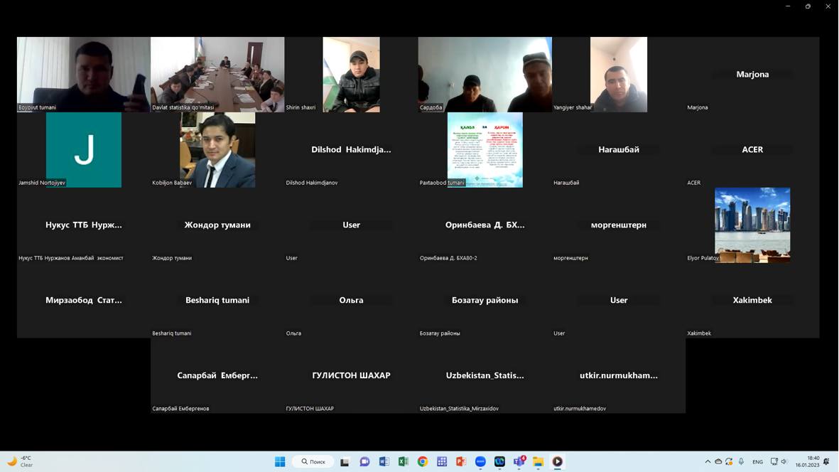 Viloyat statistika boshqarmasi tomonidan Namangan viloyati Namangan tumanida 1-KB (yillik) “Mikrofirma va kichik korxonalar” hamda 1-FX (yillik) “Fermer xo‘jaliklari” faoliyati to‘g‘risidagi davlat statistika hisobotini o‘z vaqtida va sifatli taqdim etish bo‘yicha ochiq muloqot tashkil etildi.