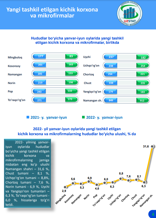 Joriy yilning yanvar-iyun oylarida Namangan viloyati bo‘yich qurilish ishlari hajmining o‘sish sur’ati 2021- yilning mos davriga nisbatan 109,8 %ni tashkil etdi.