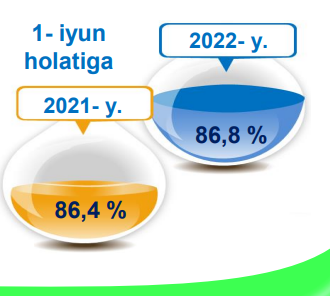 2022- yil 1- iyun holatiga ko‘ra, respublikamizda xorijiy kapital ishtirokida faoliyat ko‘rsatayotgan korxonalarning soni (14 119 ta), 2018- yilning mos davri bilan solishtirilganda 2,3 barobarga oshgan bo‘lib,