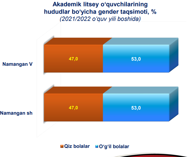 Namangan viloyatida 2020/2021 o‘quv yili boshida akademik litseylarda jami 1,8 ming nafar o‘quvchi tahsil olmoqda. Asosan Namangan shahrida o‘quvchilar tehsil olmoqda.