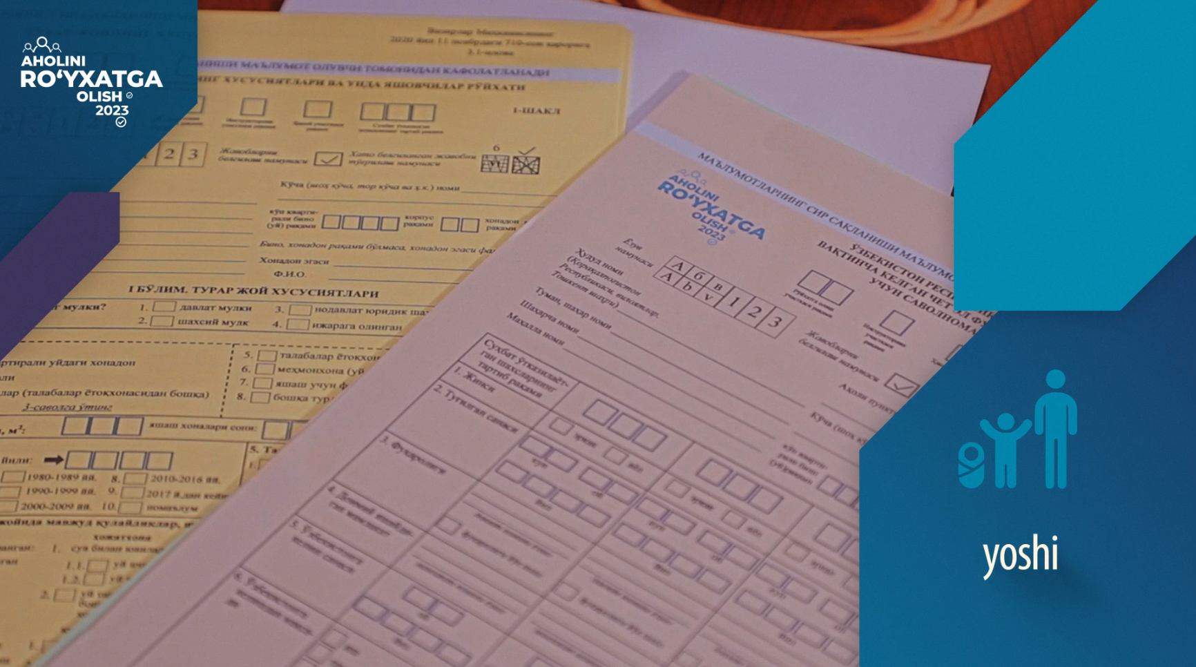 Ma'lumki O‘zbekiston Respublikasida 2023- yilda aholini ro‘yxatga olish tadbiri o‘tkaziladi. Ushbu tadbirni o‘tkazishdan asosiy maqsad — Oʼzbekiston Respublikasida aholi tarkibining holati va rivojlanish dinamikasi haqida mamlakatni sotsial-iqtisodiy va ijtimoiy-siyosiy rivojlantirish sohasidagi davlat siyosatining ustuvor yoʼnalishlarini belgilash va uni amalga oshirish uchun zarur boʼlgan ishonchli va xolis axborotni olishdan iboratdir.
