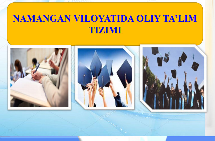 Namangan viloyatida 2020/2021-o‘quv yili boshiga oliy ta’lim tashkilotlari soni 3 tani tashkil etib, ularda tahsil olayotgan talabalr o‘tgan yilning mos davriga nisbatan 5591 taga (4,6%) ko‘paydi.