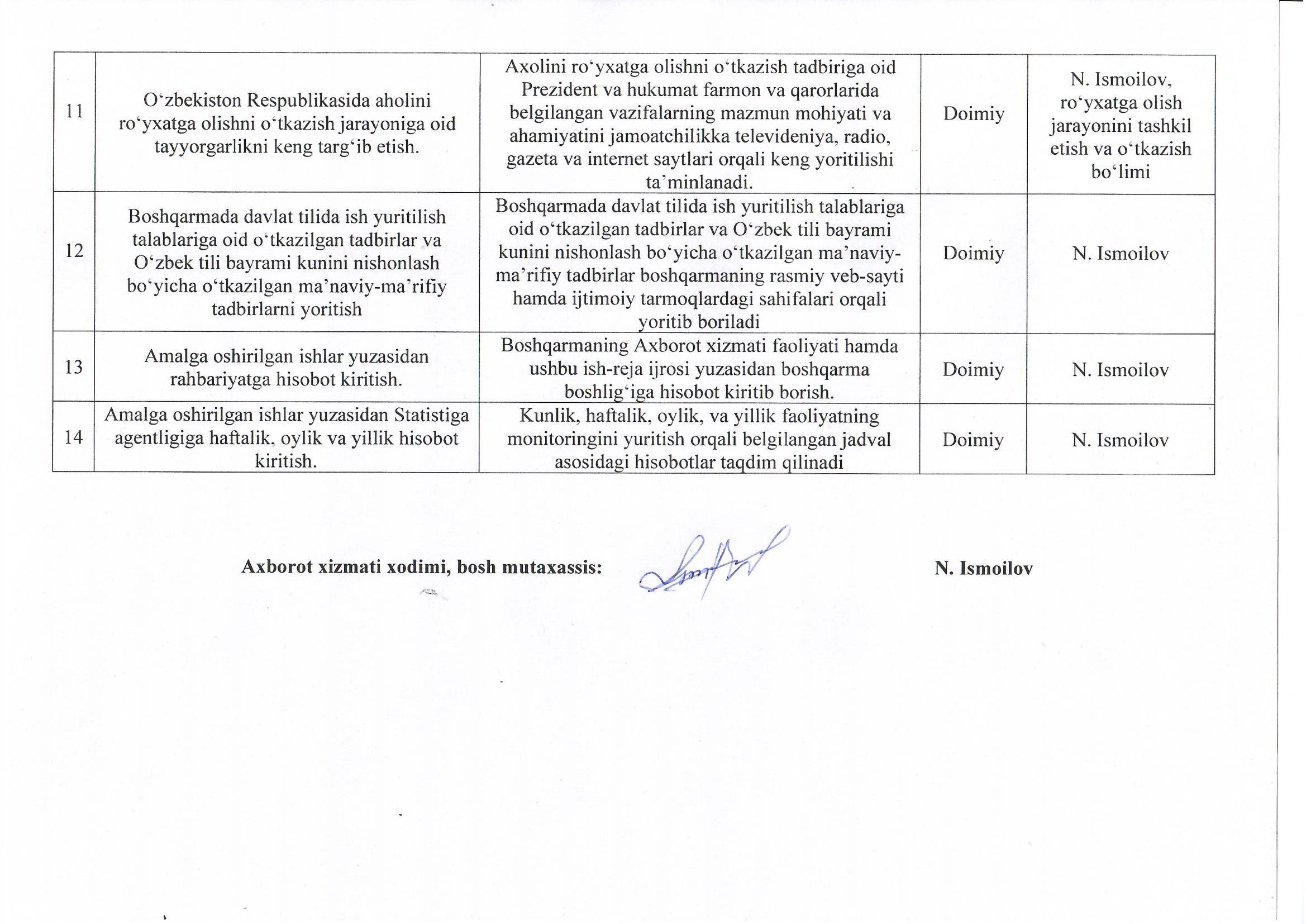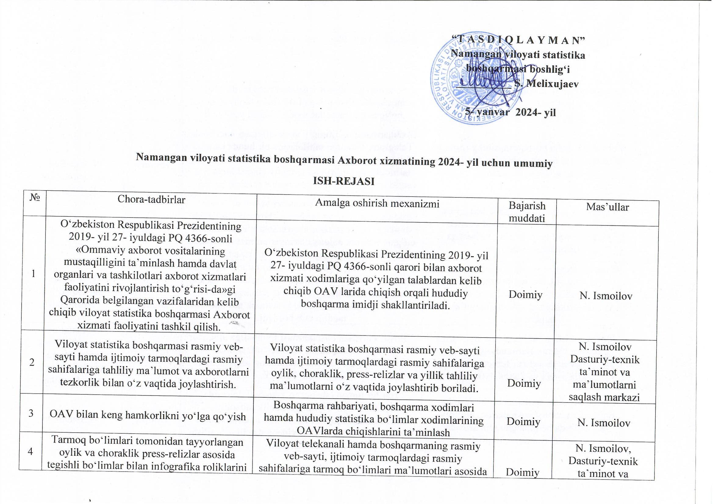 2024-yil uchun rejalashtirilayotgan tadbirlar
