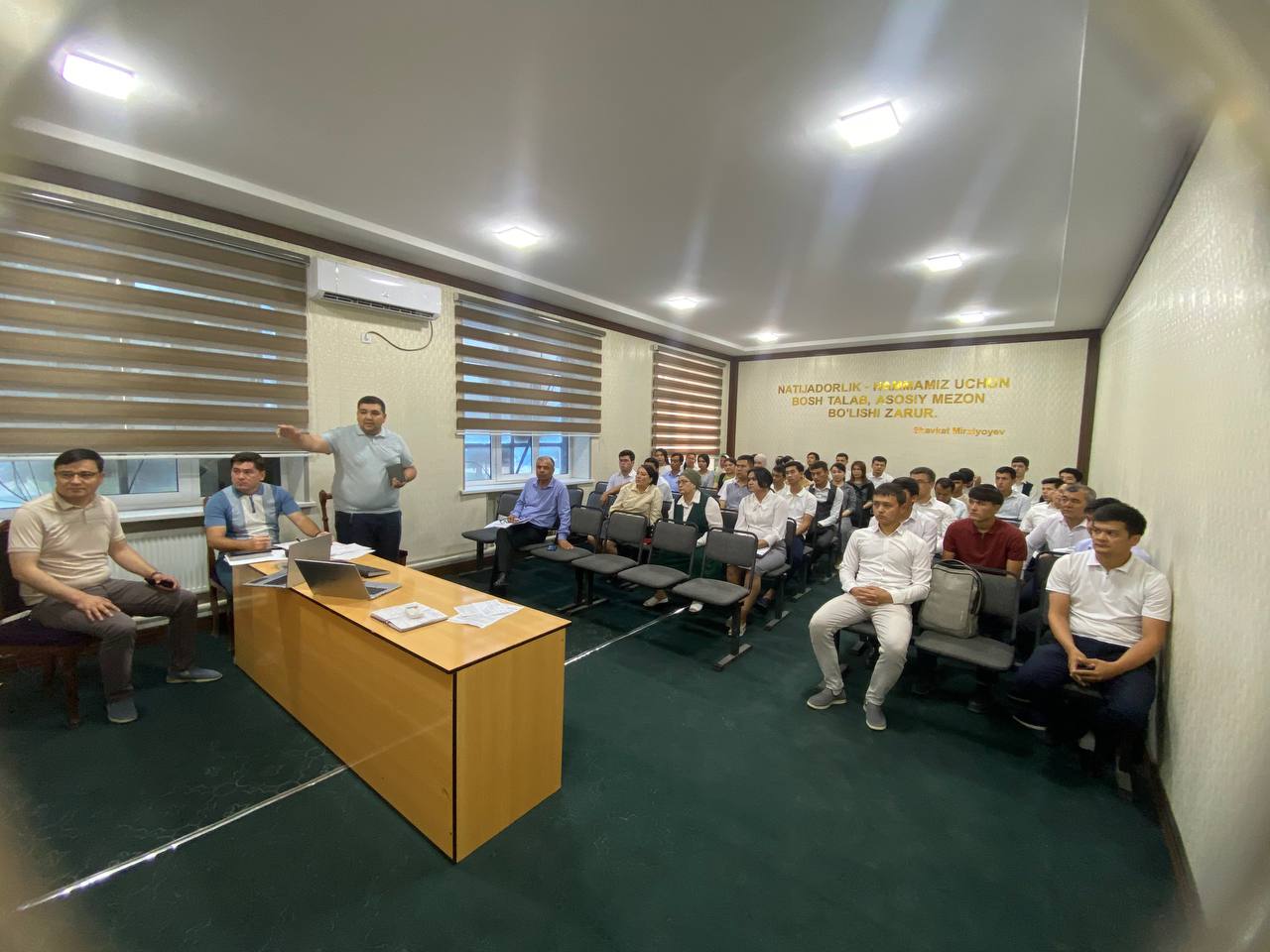 Tadbir avvalida boshqarma boshlig‘ining o‘rinbosari R. Jiyanov viloyatda statistika sohasida amalga oshirilayotgan ishlar, statistika axborotlarining haqqoniyligi va shaffofligini ta’minlash to‘g‘risida talabalarga tuchunchalar berdi.