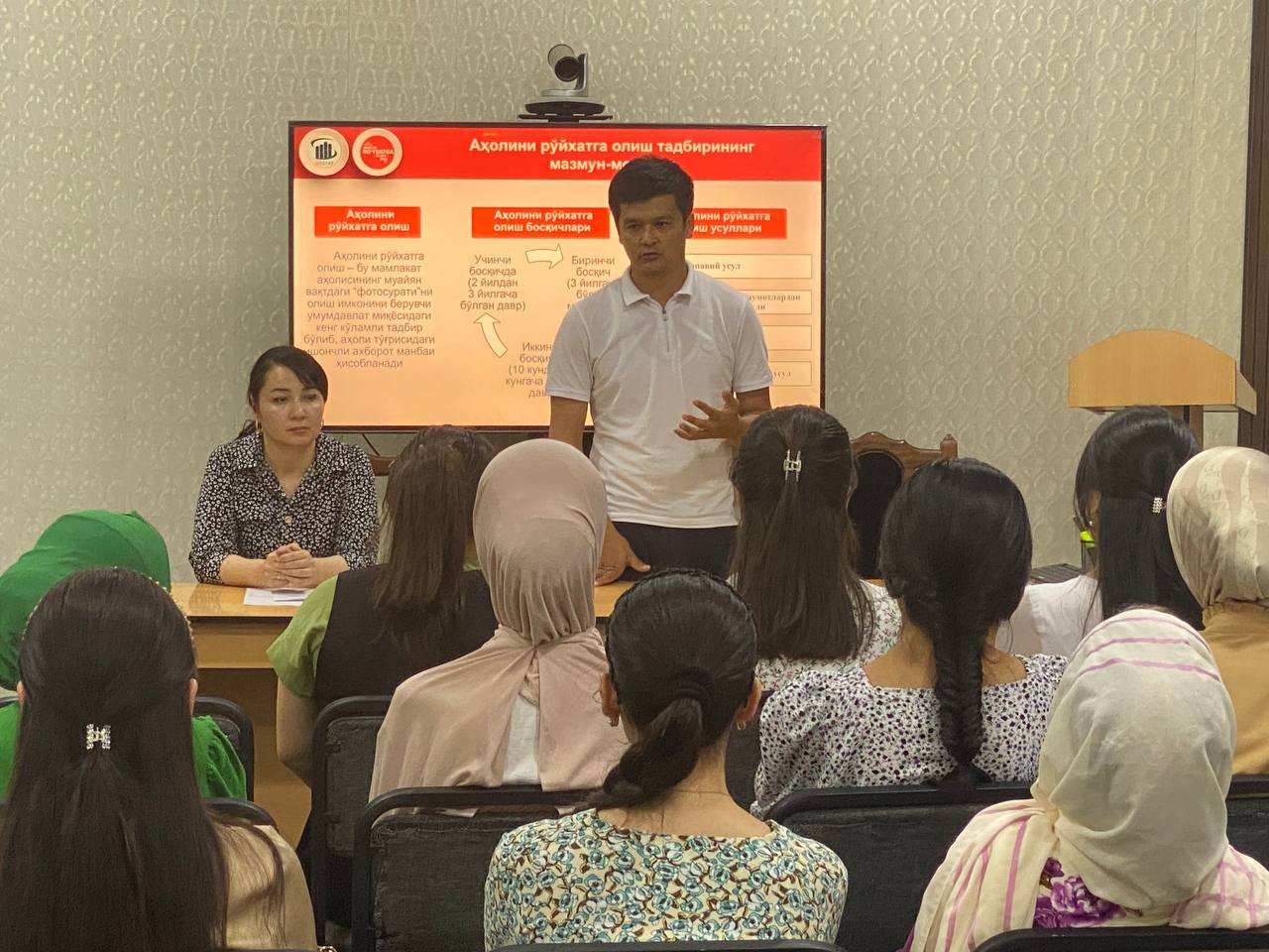 Shuningdek, Ro‘yxatga olish jarayonlarini tashkil etish bo‘limi boshlig‘i N. Najmiddinov O‘zbekiston Respublikasi Vazirlar Mahkamasining 2020- yil 11- noyabrdagi "O‘zbekiston Respublikasida aholini ro‘yxatga olishga tayyorgarlik ko‘rish va uni o‘tkazish chora-tadbirlari to‘g‘risida"gi 710-son Qarorining mazmun mohiyati to‘g‘risida tushuntirishlar berib, aholini ro‘yxatga olishning maqsadi, ro‘yxatga olishning nima uchun zarurligi hamda qarorda aholini ro‘yxatga olish savolnomalari tasdiqlanganligi tog‘risida tushuntirishlar berib o‘tdi.