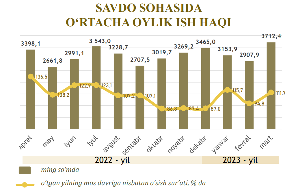 Namanganda savdo sohasida o‘rtacha oylik ish haqi qancha?