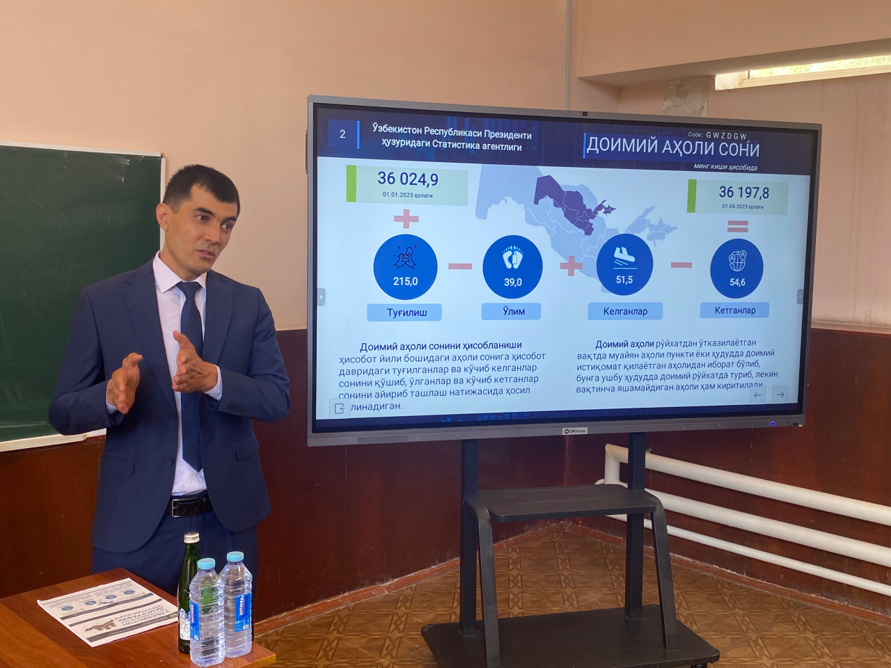 Unda Statistika agentligi Demografiya va mehnat statistikasi boshqarmasi boshlig'i Yuldoshev Zoyir Toshkanovich, Namangan viloyat statistika boshqarmasi rahbariyati, universitet professor-o‘qituvchilari va talabalari ishtirok etishdi.