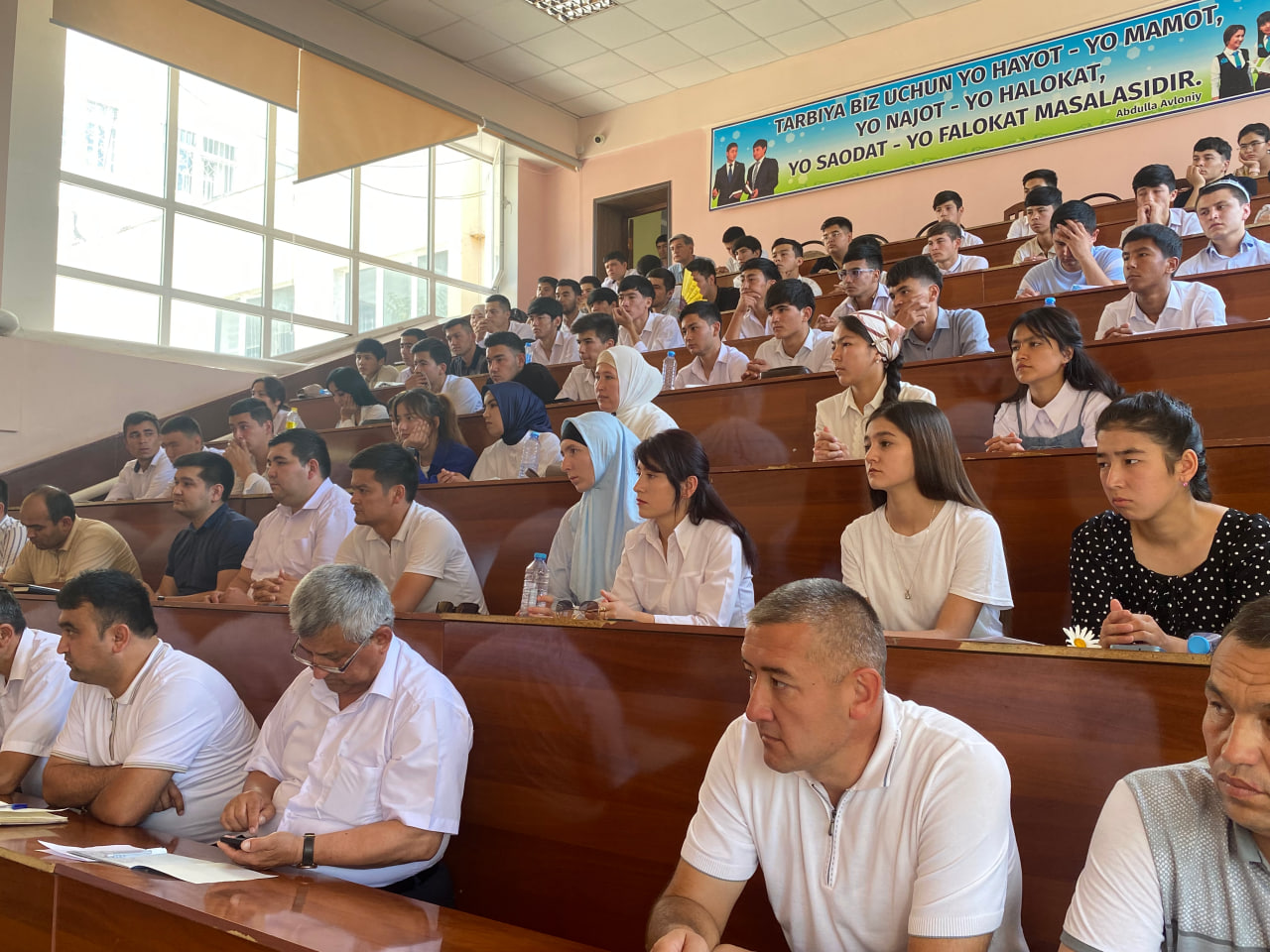 Shuningdek, Namangan viloyati statistika boshqarmasi boshlig‘i Sanjarbek Melixujayev kun tartibidagi masalalar bo‘yicha talabalarga batafsil ma’lumotlar berib o‘tdi.