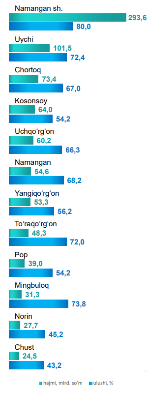 2023- yilning yanvar-martida hududlar bo‘yicha kichik tadbirkorlik subyektlarida bajarilgan qurilish ishlari hajmi va ulushi