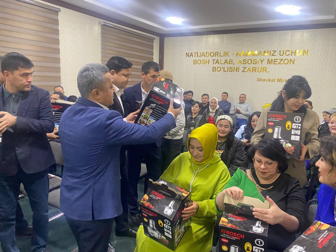 Tadbir davomida tizimda faoliyat yuritayotgan xotin-qizlarga esdalik sovg‘alari topshirildi.