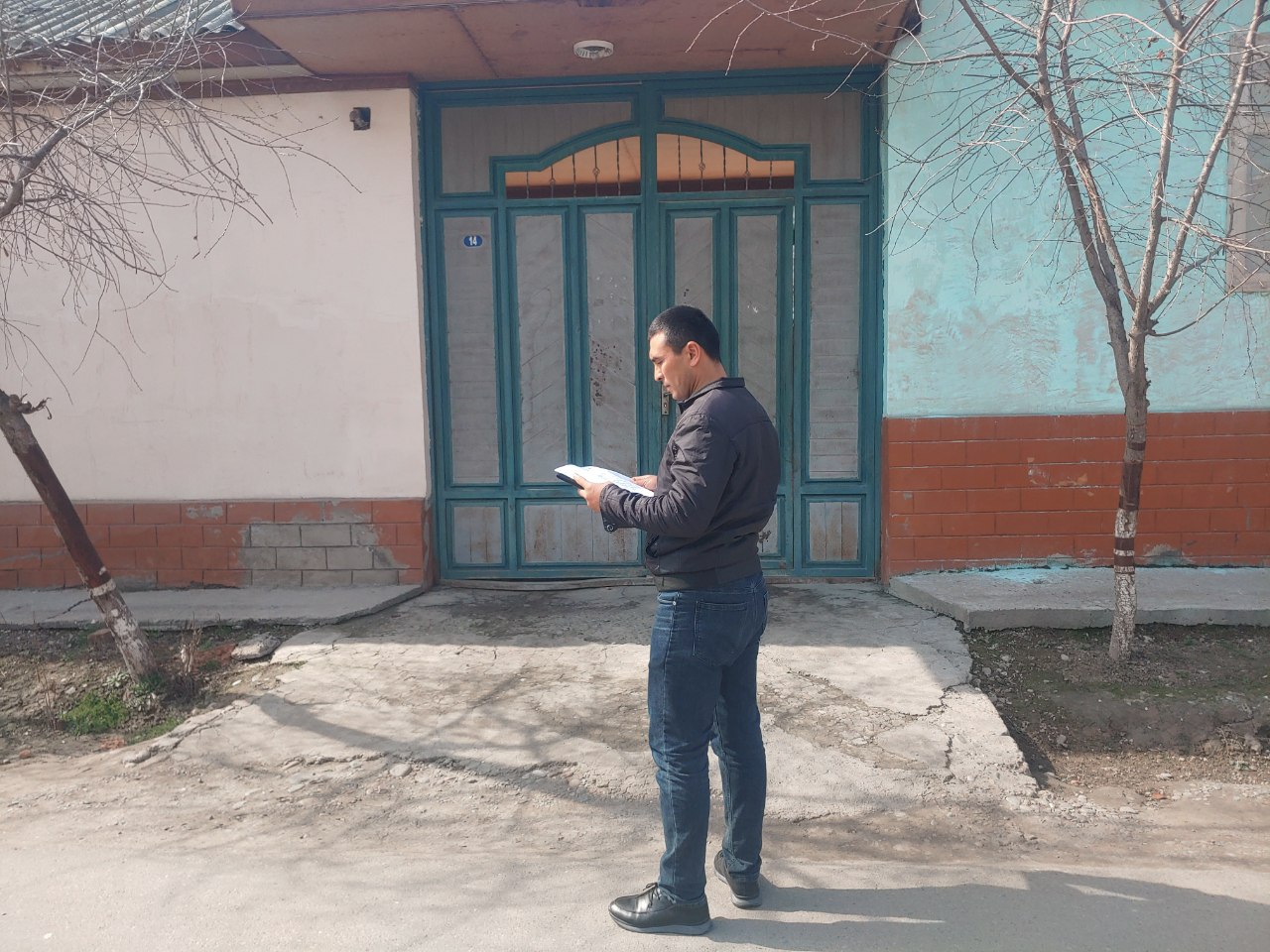 Aholini ro‘yxatga olish jarayoniga tayyorgarlik ko‘rish maqsadida hududlarda statistika organlari tomonidan mahalla faollari bilan birgalikda reja-jadval asosida mahallalardagi raqamlanmagan xonadonlarga raqam o‘rnatilganligi va nom belgilari o‘rnatilmagan ko‘chalar holatini o‘rganish ishlari davom etmoqda.