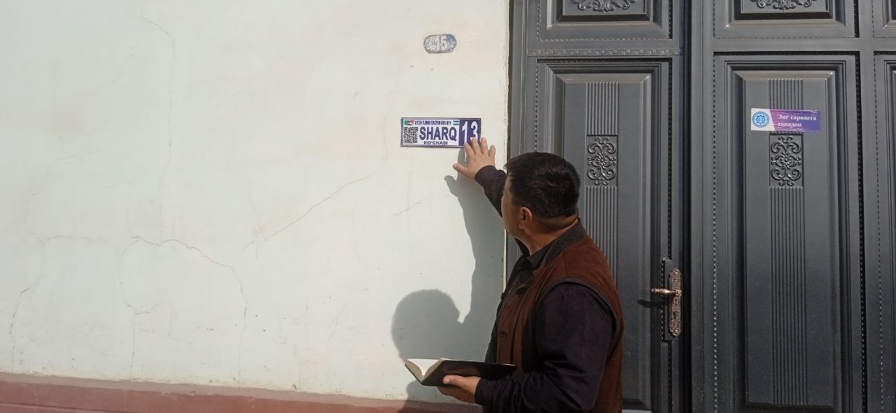 Jumladan Uychi tumanida joylashgan "Daxyak ota" mahalla fuqarolar yig'inida xonadonlarni raqamlanishi, ko‘cha nomlari bo‘yicha o‘rganish o‘tkazildi. Mazkur, o‘rganishlar natijasida ayrim ko'chalarda raqamlashtirish ishlari to‘liq yakuniga yetkazilmaganligi va nom belgilari o‘rnatilmagan ko‘chalarning mavjudligi holatlari aniqlanmoqda.