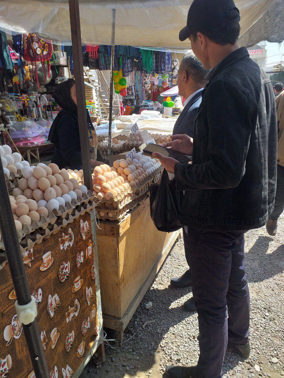 Kuzatuv jarayonida Namangan viloyat Statistika boshqarmasi boshlig‘i S. Melixujayev hamda Chust tumani narx registratori B.Turdaliyev tomonidan oziq-ovqat mahsulotlari narxlarining ko‘rsatkichlari, ularning shaffofligi qiyosiy o‘rganildi va olingan ma’lumotlar planshet qurilmasiga qayd etib borildi.