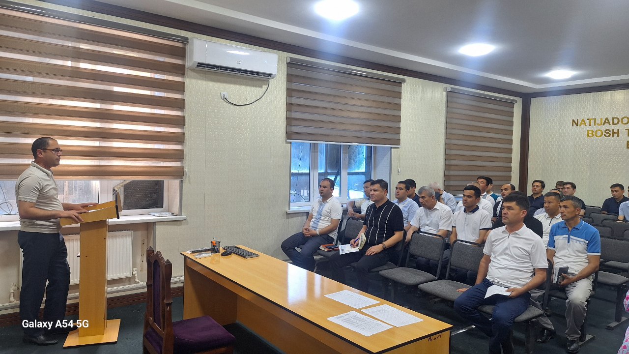 Mazkur o'quv seminarida Statistika boshqarmasi bosh yuriskonsulti B. Ismatullayev tomonidan O‘zbekiston Respublikasi Prezidentining 07.05.2024- yildagi “Yer uchastkalarini ijaraga berish tartibi takomillashtirilishi munosabati bilan O‘zbekiston Respublikasi Prezidentining ayrim hujjatlariga o‘zgartirishlar kiritish to‘g‘risida” PF-76-son Farmoni haqida tushuncha berildi.