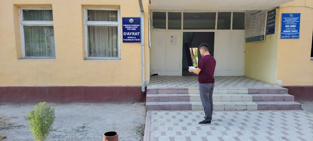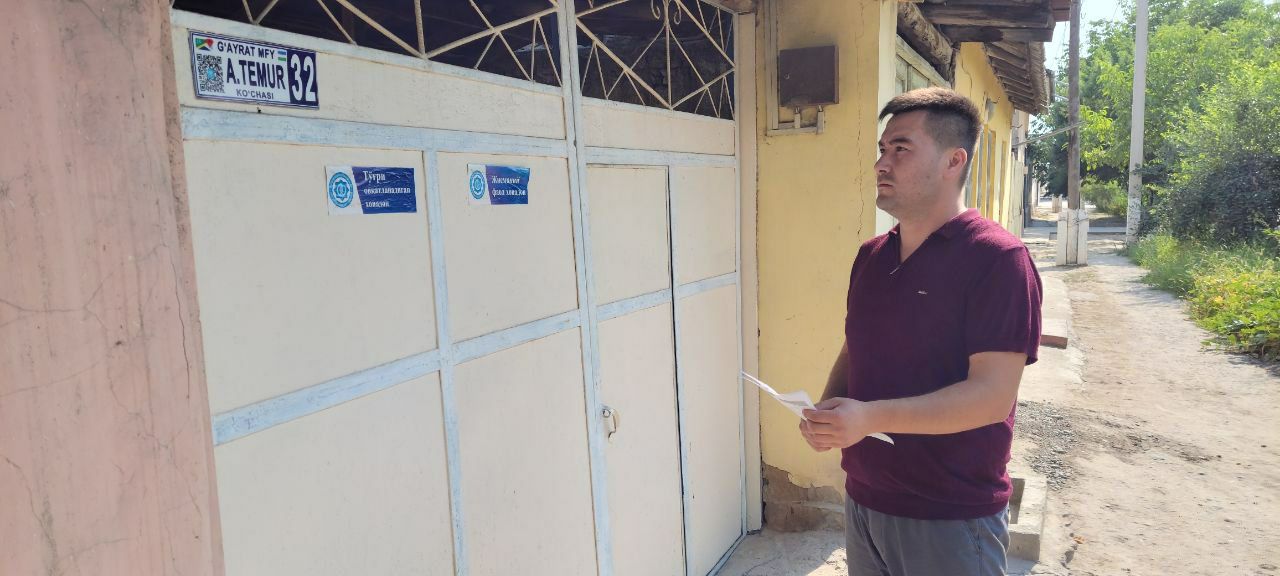 Jumladan, Uychi tumanida joylashgan "G‘ayrat" mahalla fuqarolar yig'inida xonadonlarni raqamlanishi, ko‘cha nomlari bo‘yicha o‘rganish o‘tkazildi. Mazkur, o‘rganishlar natijasida ayrim ko'chalarda raqamlashtirish ishlari to‘liq yakuniga yetkazilmaganligi va nom belgilari o‘rnatilmagan ko‘chalarning mavjudligi holatlari aniqlanmoqda.