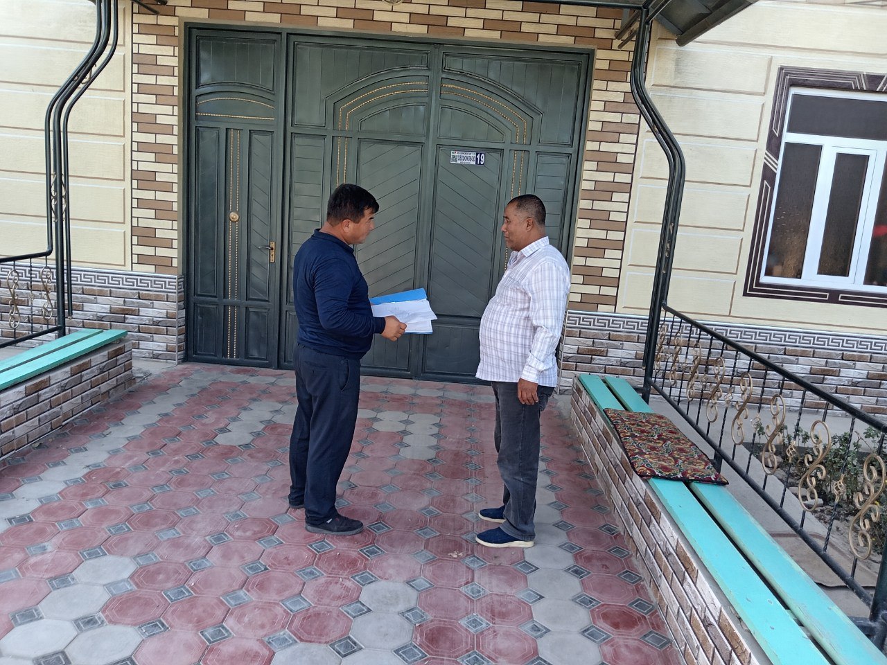 Aholini ro‘yxatga olish jarayoniga tayyorgarlik ko‘rish maqsadida hududlarda statistika organlari tomonidan mahalla faollari bilan birgalikda reja-jadval asosida mahallalardagi raqamlanmagan xonadonlarga raqam o‘rnatilganligi va nom belgilari o‘rnatilmagan ko‘chalar holatini o‘rganish ishlari davom etmoqda.