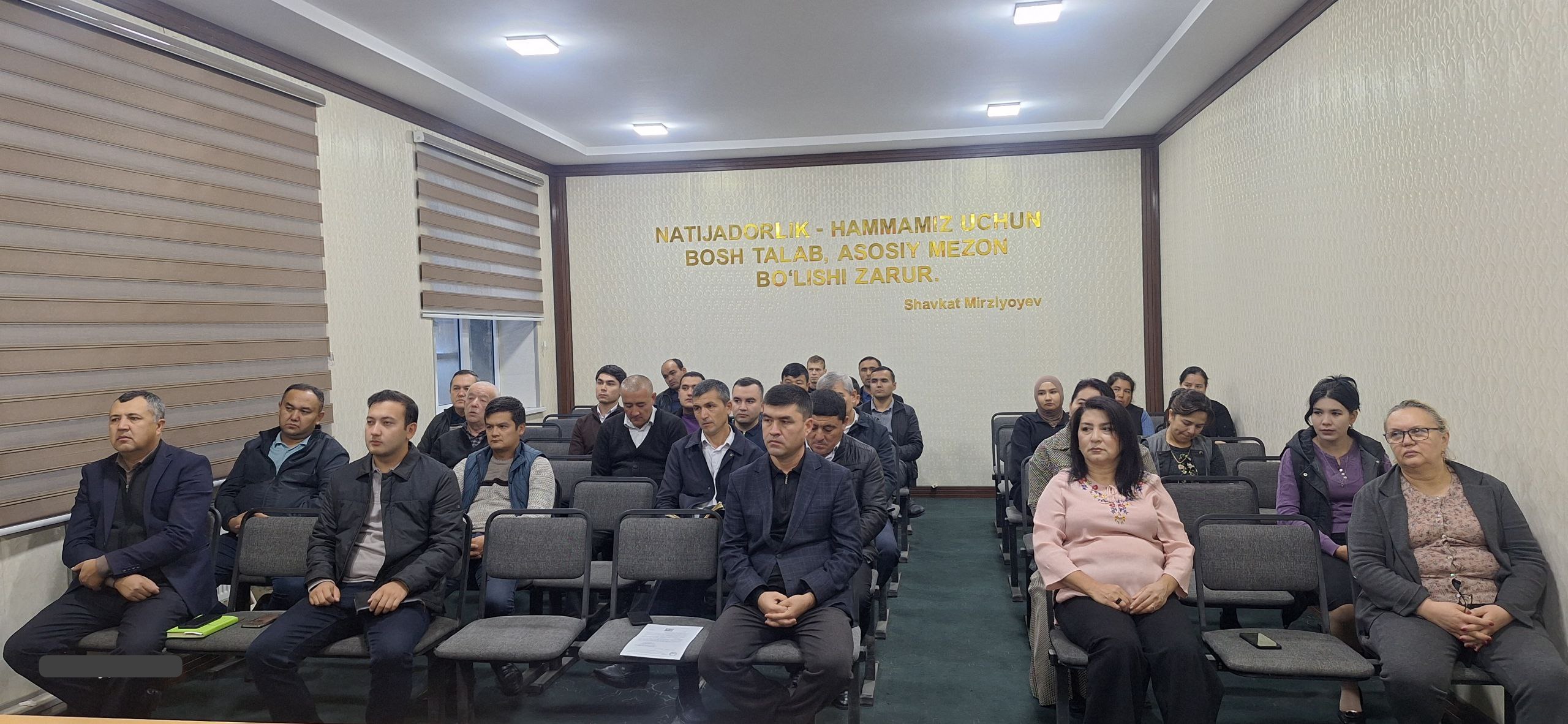 Mazkur o'quv seminarida Statistika boshqarmasi boshlig‘i S.Melixujayev kun tartibidagi masalalarga toʻxtalib o‘tib, joriy yilning 27-oktabr kuni O‘zbekiston Respublikasi Oliy Majlisi Qonunchilik palatasi, xalq deputatlari viloyat, tuman va shahar Kengashlariga o‘tkaziladigan saylov haqida boshqarma xodimlariga maʼlumot berdi.