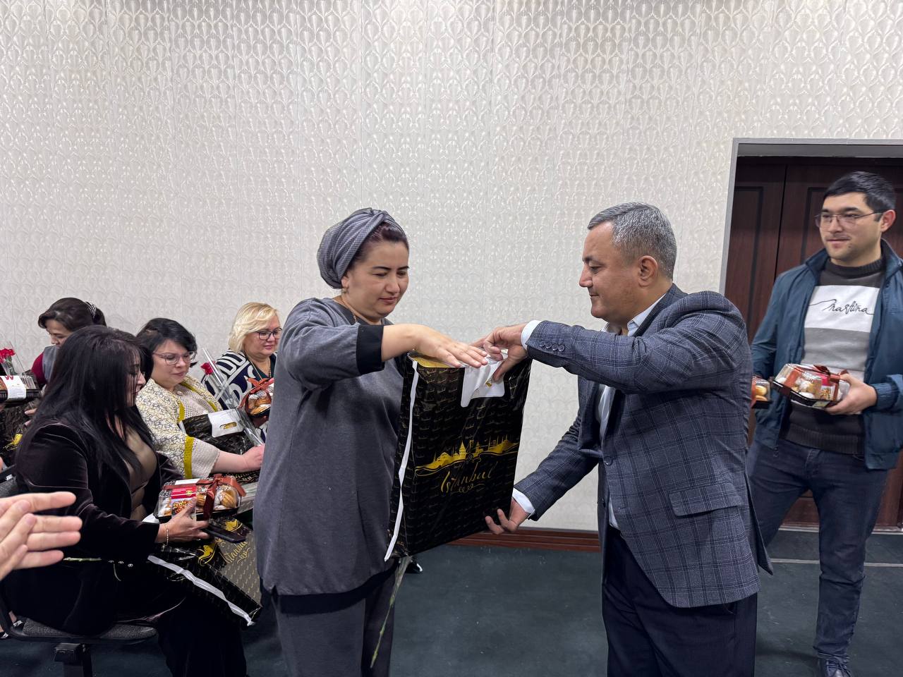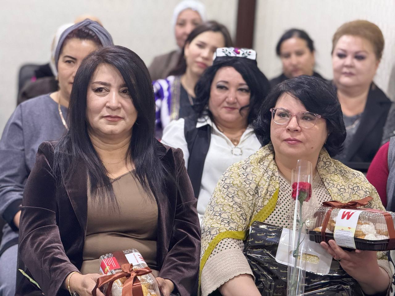 Tadbir davomida tizimda faoliyat yuritayotgan xotin-qizlarga esdalik sovg‘alari topshirildi.